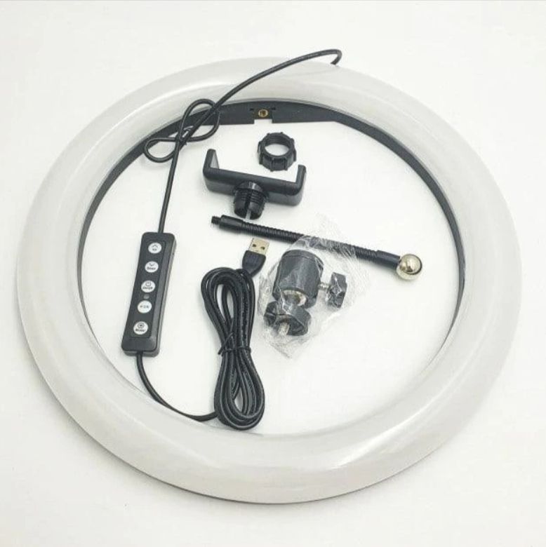 Кільцева світлодіодна лампа RGB MJ30 — це потужний та багатофункціональний інструмент, створений для відкриття нових горизонтів творчості. Завдяки великому діаметру 30 см та високій потужності 30 Вт, вона забезпечує чудове освітлення, яке ідеально підходить як для професійної студії, так і для домашнього використання.