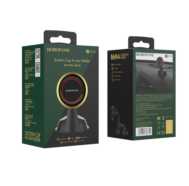 Автомобільний тримач Borofone BH14 Journey — це надійний та стильний аксесуар, який забезпечує впевнену фіксацію смартфона в салоні вашого авто. Завдяки потужній вакуумній присосці, тримач можна встановити як на лобове скло, так і на торпедо (панель приладів). Якщо ви плануєте купити магнітний тримач Borofone BH14, ця модель стане відмінним вибором завдяки своїй здатності витримувати навантаження до 1 кг, що дозволяє надійно утримувати навіть великі смартфони та GPS-навігатори.