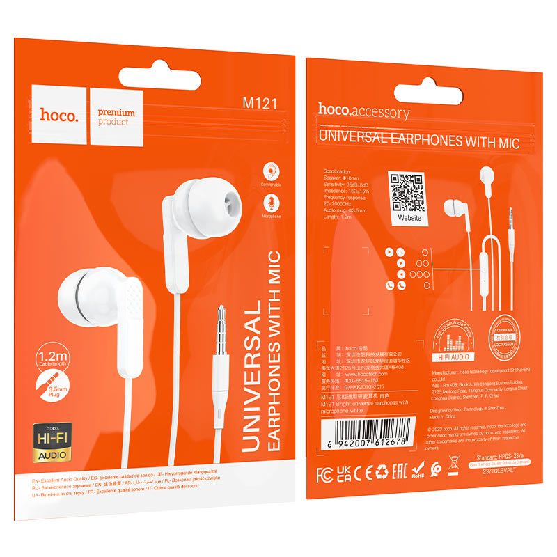 Навушники HOCO M121 Bright — це легка та стильна провідна гарнітура, що поєднує ергономічний дизайн та якісне звучання. Вони ідеально підходять для щоденного використання зі смартфоном, планшетом чи комп'ютером, забезпечуючи зручне керування музикою та дзвінками.