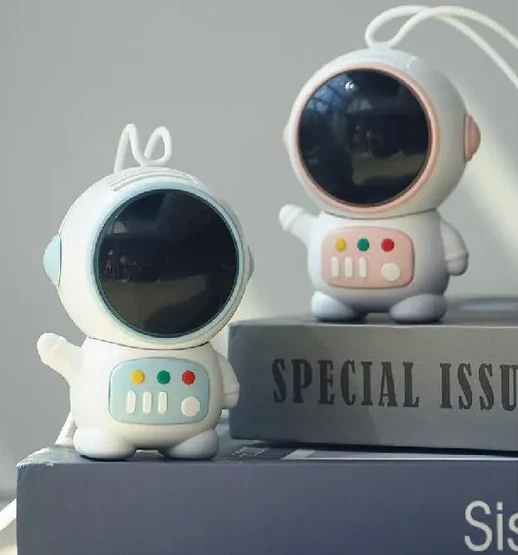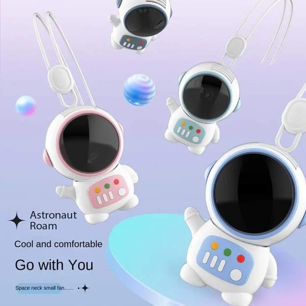 Портативний міні-вентилятор у формі стильного космонавта — це інноваційне рішення для охолодження в дорозі, на прогулянці чи під час роботи. Завдяки компактному дизайну та спеціальній підвісній стрічці, пристрій можна зручно носити на шиї, звільнивши руки. Вентилятор оснащений цифровим дисплеєм, який дозволяє легко контролювати параметри роботи пристрою.