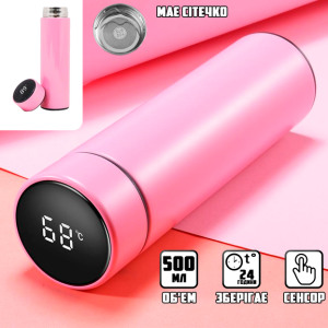 Розумний термос з індикатором температури 500 мл термокухоль з LCD-екраном Рожевий, Чорний