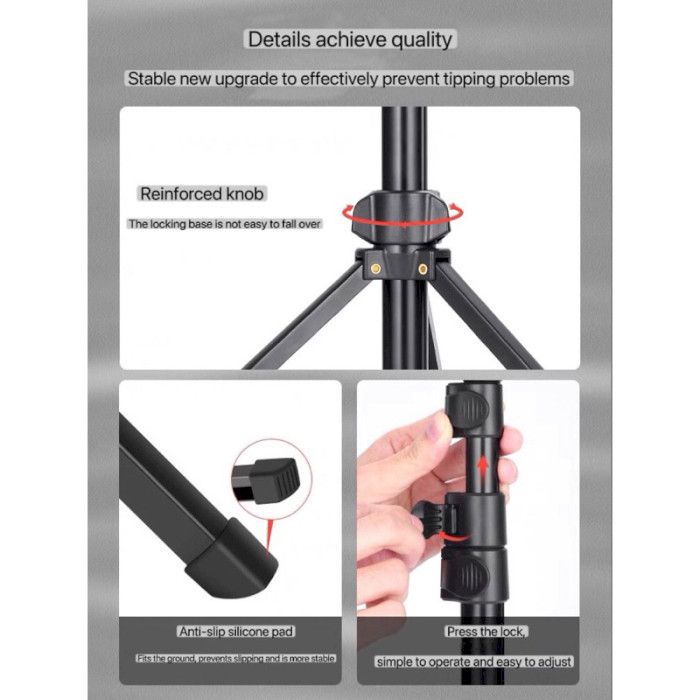 • Універсальна сумісність: Оснащений стандартною різьбою 1/4 дюйма, що робить його сумісним з більшістю камер, кільцевих ламп та тримачів для телефонів.