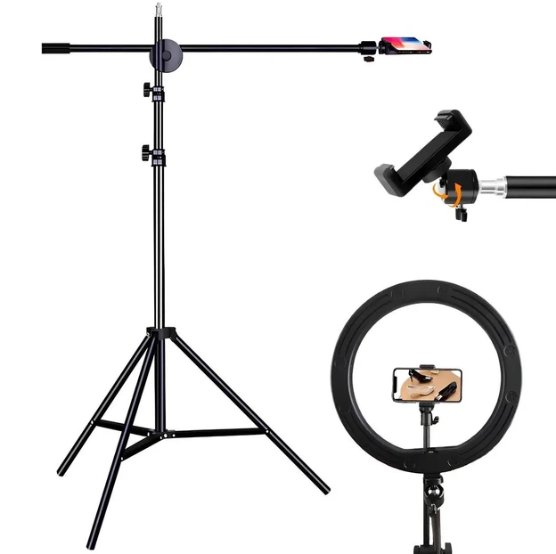Універсальний штатив-журавель — це професійне рішення для створення якісного фото- та відеоконтенту. Завдяки унікальній конструкції з горизонтальною перекладиною, цей штатив дозволяє здійснювати зйомку під будь-яким кутом, включаючи популярний режим "вид зверху" (flat lay). Якщо ви плануєте купити штатив журавель для телефону та лампи, ця модель забезпечить вам повну свободу для творчості в TikTok, YouTube або Instagram.
