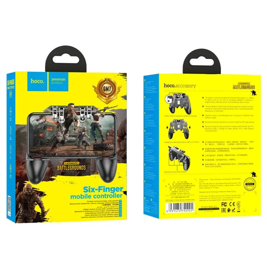 Ігровий контролер HOCO GM7 Eagle Six Finger — це практичний та ергономічний геймпад-тригер, створений для максимальної ефективності у мобільних шутерах, таких як PUBG, Free Fire та Call of Duty. Його головна перевага — можливість задіяти одночасно шість пальців, забезпечуючи гравцю блискавичну реакцію та перевагу в швидкості виконання дій.