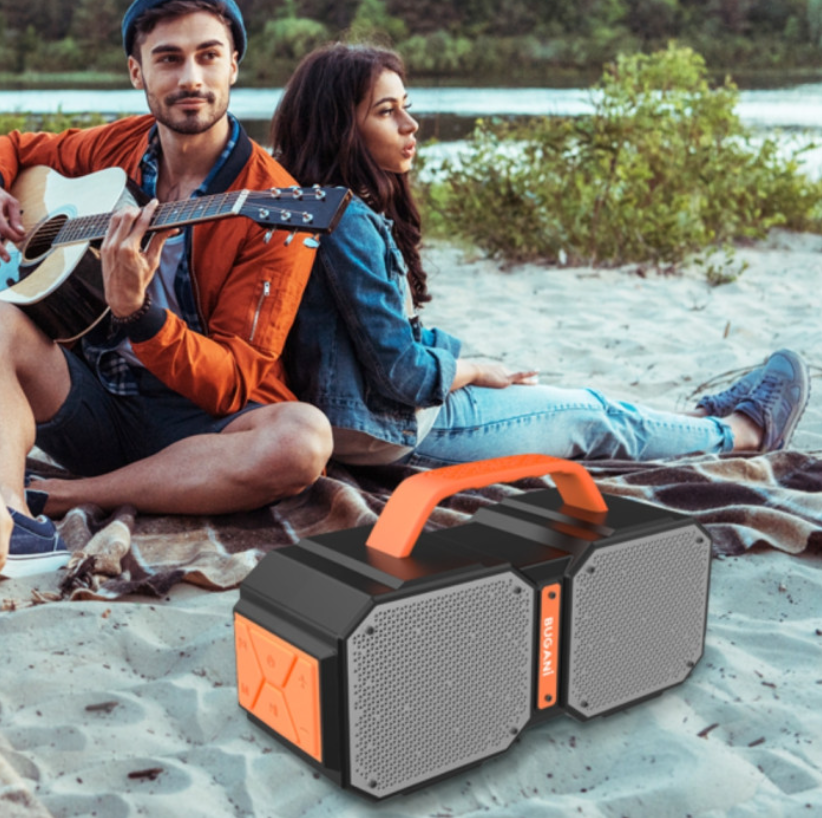 Bugani Shock BS21007 — це вибір для тих, хто любить гучний та якісний звук. Завдяки вихідній потужності 60 Вт, ця колонка забезпечує глибокі баси та чисті високі частоти навіть на вулиці. Вона ідеально підходить для вечірок, відпочинку на природі чи використання вдома. Корпус із вологозахистом IPX5 дозволяє не хвилюватися про випадкові бризки води, а вбудований акумулятор забезпечує тривалу автономну роботу.Ключові переваги:Потужність 60 Вт: Подвійні динаміки та пасивні випромінювачі створюють об'ємний звук, який заповнює будь-який простір.Bluetooth 5.0: Стабільне підключення до смартфона на відстані до 10-15 метрів без перешкод.Захист IPX5: Колонка надійно захищена від дощу, пилу та бризок води — ідеальний супутник для басейну чи пляжу.Функція TWS (True Wireless Stereo): Можливість об'єднати дві колонки Bugani в одну стереосистему для отримання справжнього об'ємного звуку.Автономність: Висока ємність акумулятора дозволяє слухати музику весь день без підзарядки.Технічні характеристики (Таблиця для сайту)ПараметрЗначенняБрендBuganiМодельShock BS21007Вихідна потужність60 ВтВерсія Bluetooth5.0ВологозахистIPX5ФункціїTWS, Bluetooth, Aux-in, TF-картаЧас роботидо 20 годин (на середній гучності)ІнтерфейсиType-C для зарядки, AUX, USBЧас зарядки3-4 годиниМатеріалМіцний пластик + тканинне оздоблення