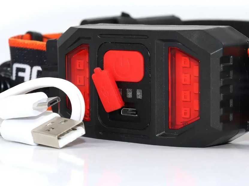 Ліхтар налобний micro USB Bailong BL-SLG. Червоне світло, зарядка через USB.
