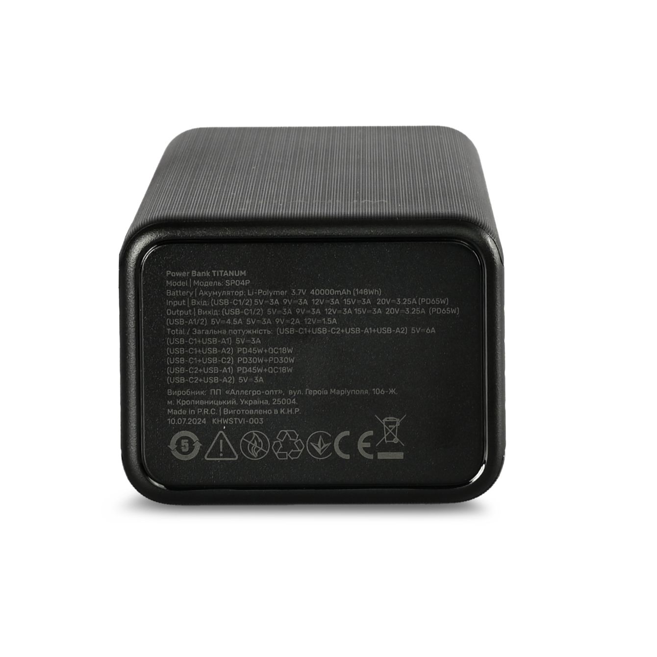 Повербанк 40000mAh TITANUM SP04P PD65W Black PowerBank Зовнішній аккумулятор
