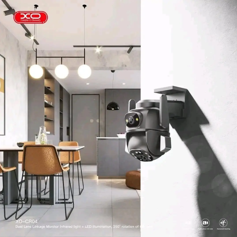 XO CR04 Robot Dual — це інтелектуальна система відеоспостереження нового покоління, що об'єднує дві незалежні камери в одному корпусі. Завдяки системі Dual Screen, пристрій одночасно контролює загальну панораму та деталізовану зону з рухомим відстеженням об'єктів. Це ідеальне рішення для охорони приватних будинків, парковок та комерційних об’єктів, яке замінює дві звичайні камери, забезпечуючи огляд без сліпих зон у форматі Full HD (4MP).